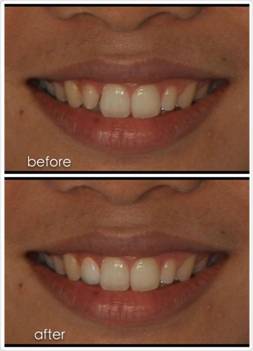 马珍珍女士的过小牙利用瓷睿刻美容修复的前后对比